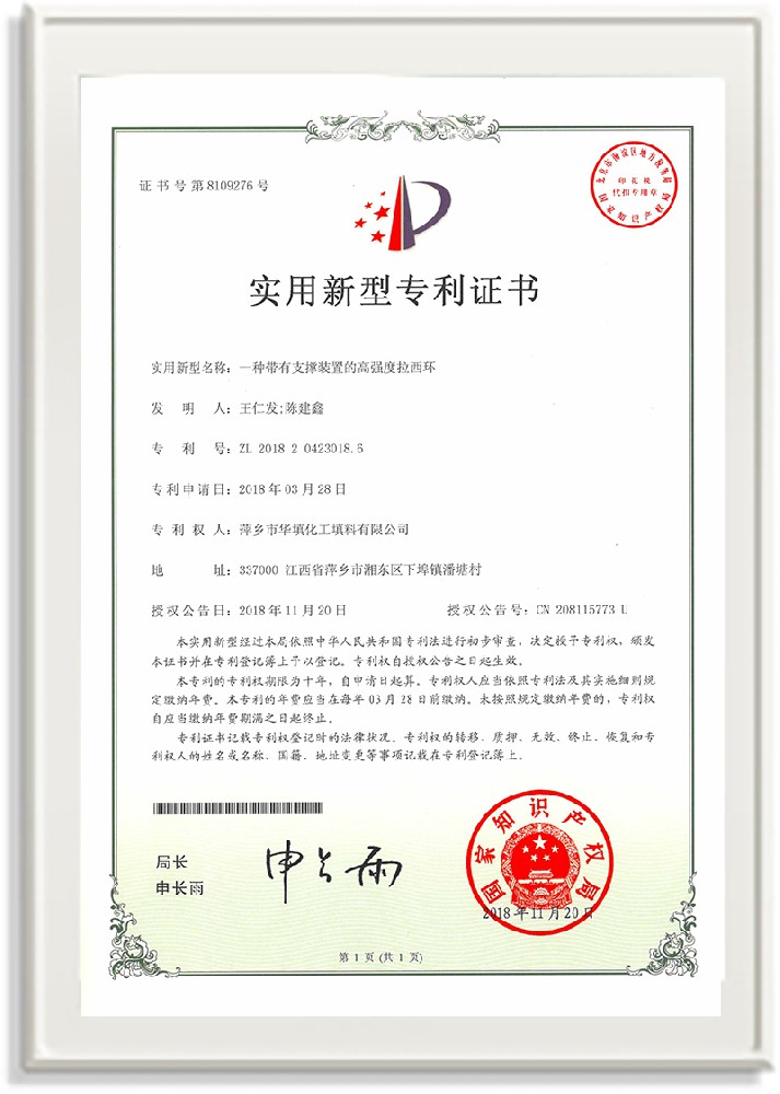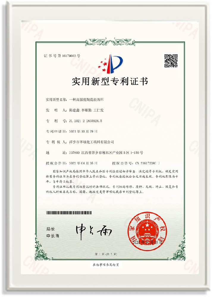 萍鄉市華填化工填料有限公司,位于320國道、109國道、浙贛鐵路、昌金高速公路貫穿其中,交通便利,是江西西部一顆燦爛明珠,創(chuàng)建于20世紀70年代初期,是中國石油天然氣股份有限公司“能源一號網”會員企業、中國石化物資采購電子商務網絡和中國海洋石油總公司采辦業務系統成員單位,是上海大學江西材料基因組工程產業研究院工業陶瓷產業創(chuàng)新聯盟基地,且通過ISO9001:2015質量管理體系、ISO14001:2015環(huán)境管理體系、ISO45001:2018職業健康安全管理體系認證的化工填料生產企業。公司擁有陶瓷、塑料、金屬填料、催化劑、活性氧化鋁、分子篩等產品生產線,現有固定資產3616萬元,占地面積3.8萬平方米。公司具有悠久的生產歷史、雄厚的技術力量和先進的生產工藝設備,可生產工業瓷球(支撐劑)、陶瓷、金屬、塑料質的規(guī)整、散堆化工填料及分子篩、催化劑、生化濾料、活性氧化鋁、石化助劑、活性炭、環(huán)保材料、耐火材料等系列的200多種規(guī)格型號產品。